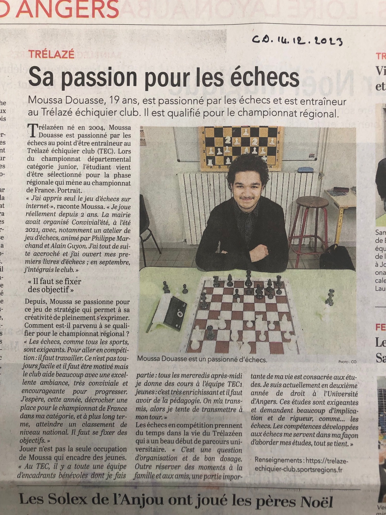 Télécharger l'image jpgArticle Courrier de l'Ouest du 14 décembre 2023. Interview Moussa Douasse