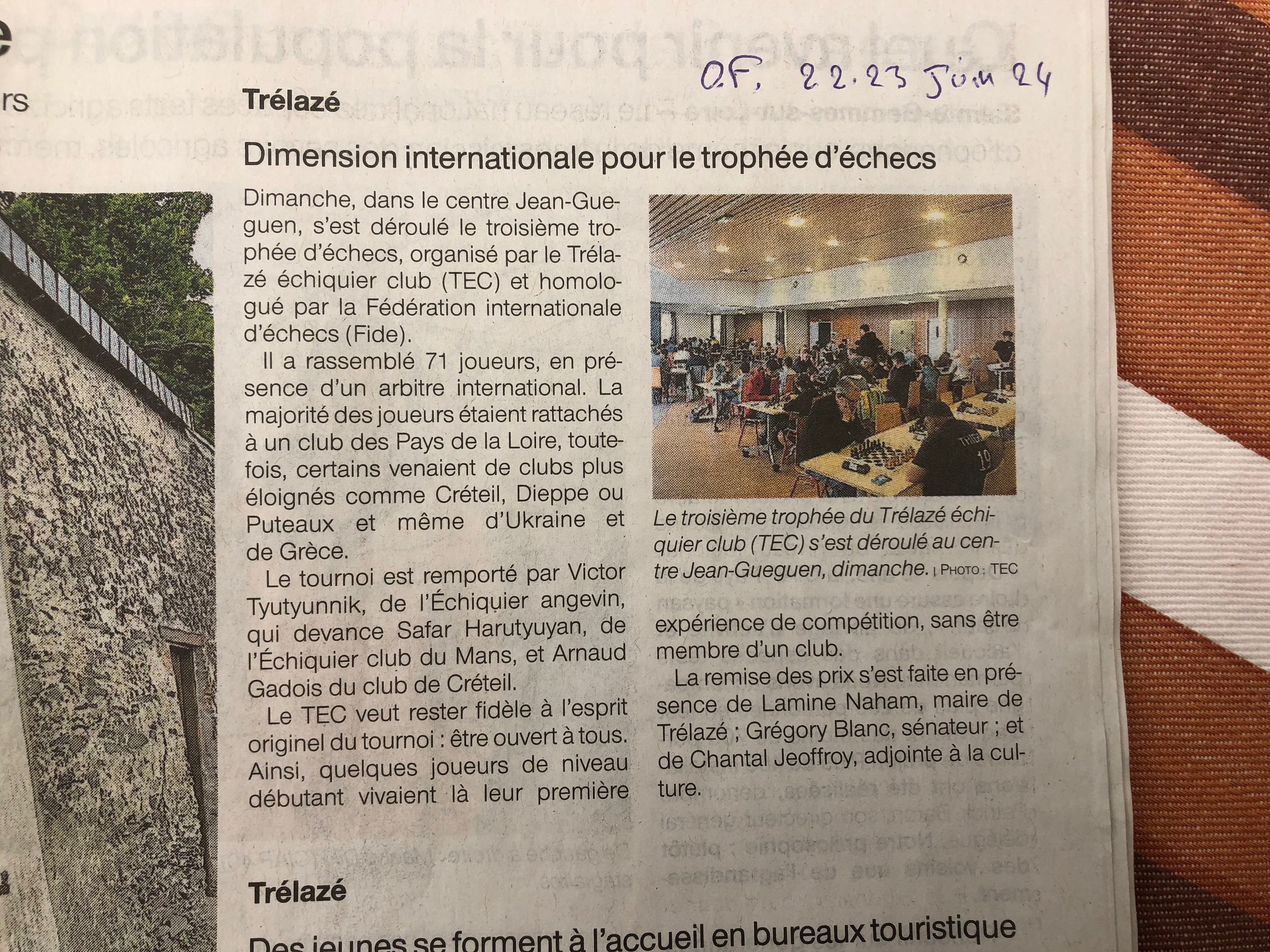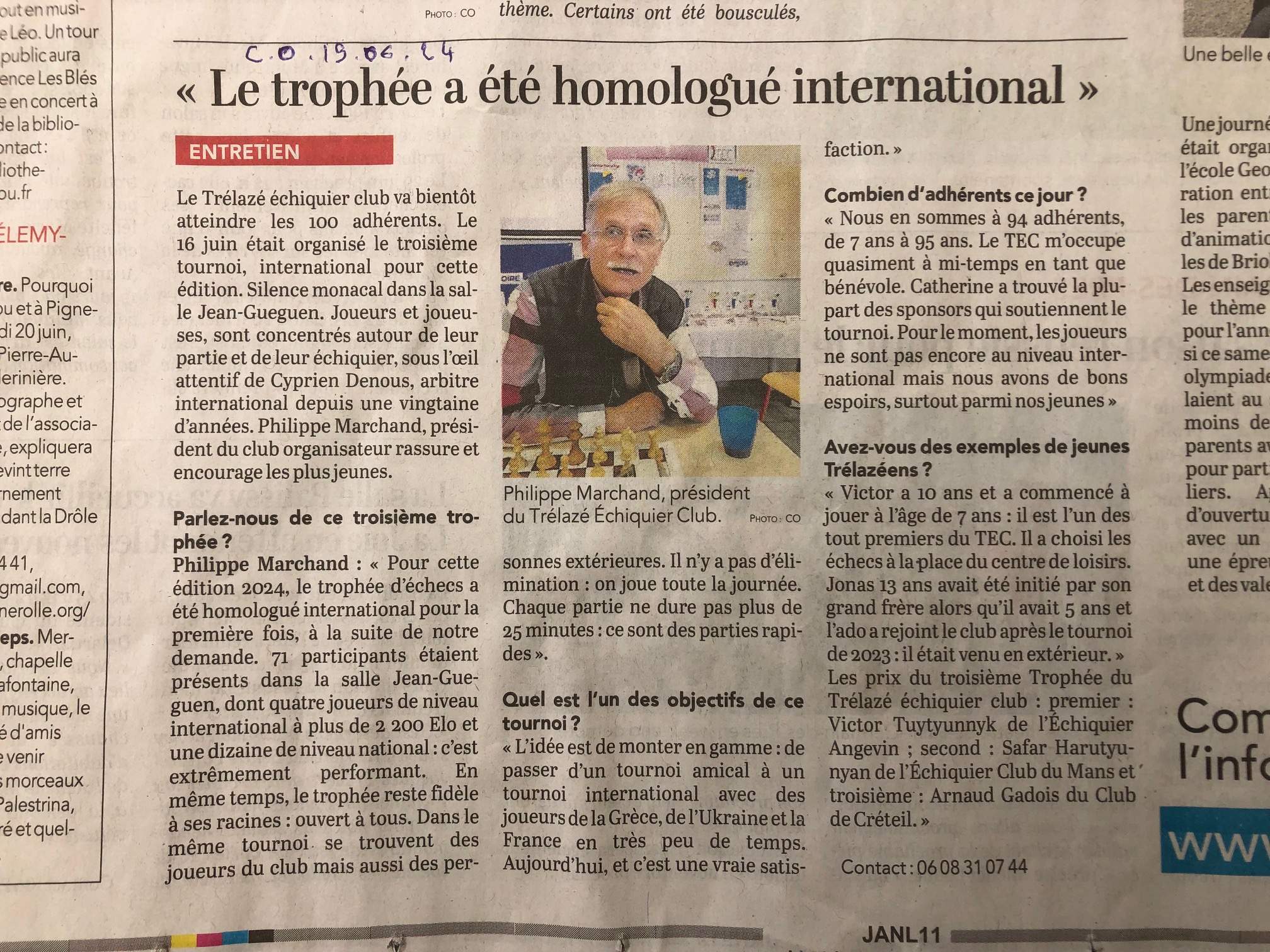 Courrier de l'Ouest du 19 juin 2024 : 3ème Trophée du 16 juin 2024