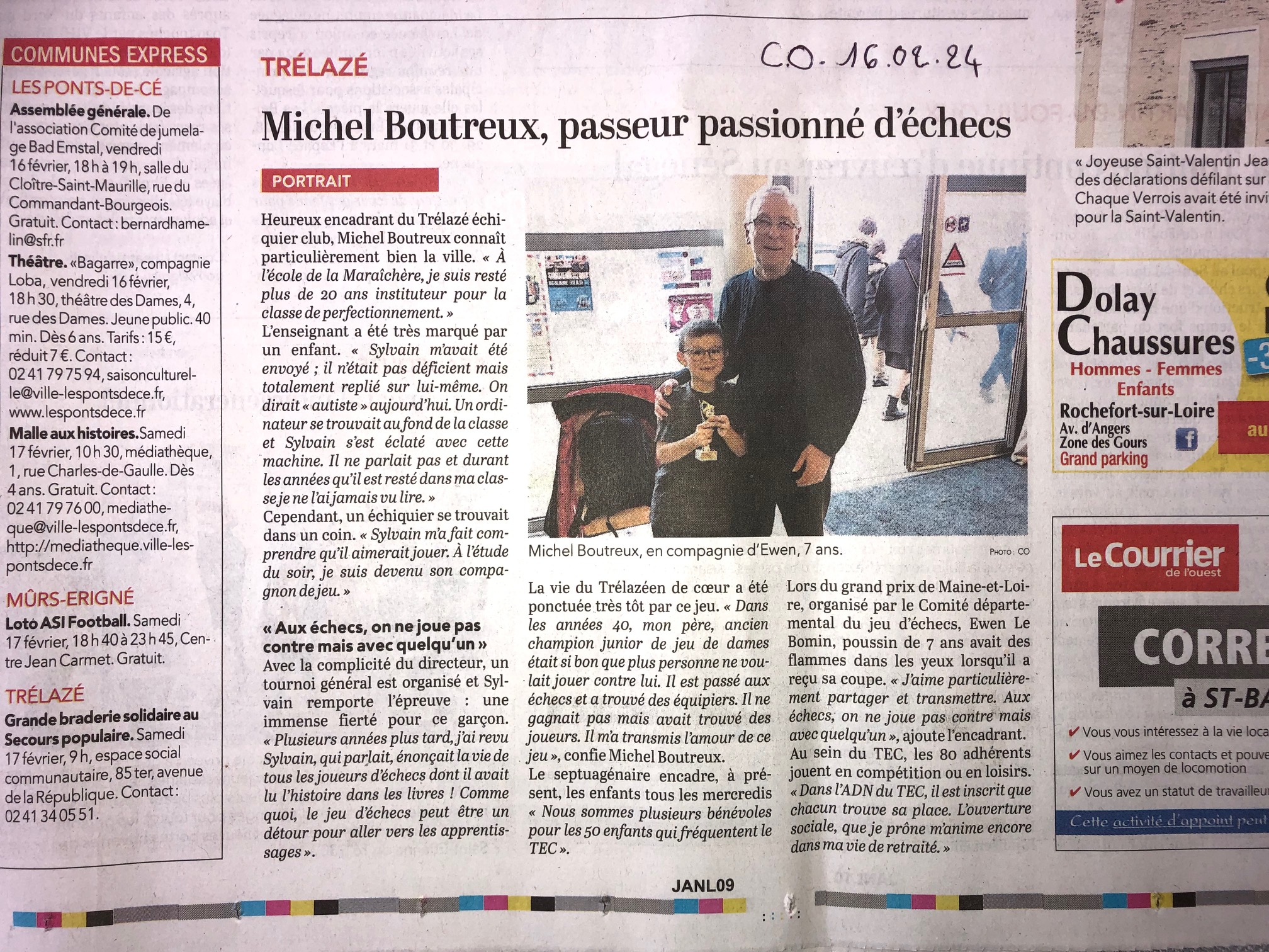 Courrier de l'Ouest du 16 février 2024 - Interview de Michel Boutreux