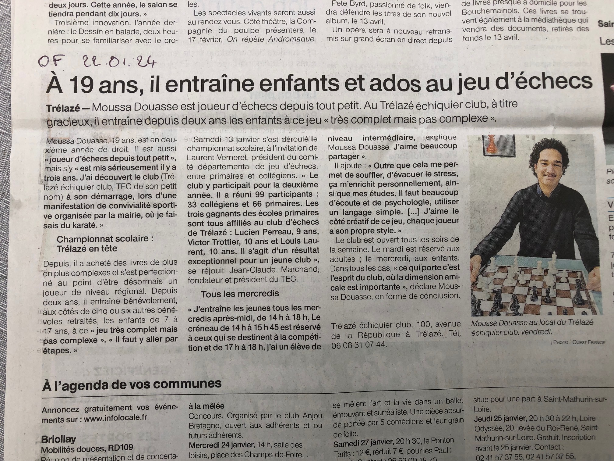 Télécharger l'image jpgOuest France - 22 janvier 2024 Interview Moussa Douasse
